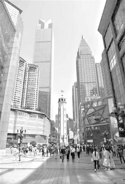 更大的变化始于1997年。那一年,重庆成为中央直辖市,以解放碑为中心建起了西部第一条商业步行街——解放碑中心购物广场。