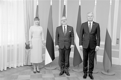 12月17日,在拉脱维亚首都里加,拉脱维亚总统莱维茨(中)、爱沙尼亚总统卡柳莱德(左)和立陶宛总统瑙塞达举行三方会晤。 波罗的海三国总统17日在拉脱维亚首都里加举行会晤,重申将促进波罗的海铁路项目如期实施。 新华社发(艾迪斯 摄)