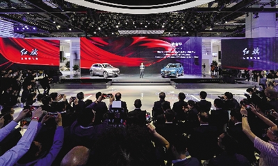 4月16日:2019第十八届上海国际车展上,新红旗品牌战略布局下的首款豪华B级SUV红旗HS5亮相。新红旗品牌持续创新、产品矩阵日臻完善,不断引领中国品牌向上。