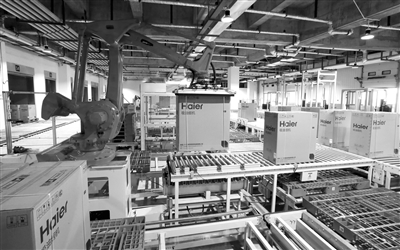 在位于山东省青岛市即墨通济新经济区,由日日顺物流打造的首个大件物流智能无人仓今年夏季投入运行。该无人仓应用全景智能扫描站、关节机器人、吸盘龙门拣选机器人等多项定制智能设备,采用5G和视觉识别、智能控制算法等人工智能技术,可实现冰箱、空调等大件商品24小时不间断分拣作业。图为8月5日,在日日顺物流(即墨)产业园的大件物流智能无人仓,码垛机器人在搬