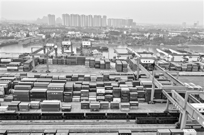 这是1月5日拍摄的广西贵港港(无人机照片)。 统计数据显示,2020年广西贵港港货物吞吐量突破1亿吨,达1.0552亿吨,同比增长30.9%。贵港港位于西江航运干线中游,是我国内河主要港口之一。 新华社记者 曹祎铭 摄