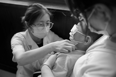 近日,安徽省合肥市稻香村街道社区卫生服务中心启动“冬病夏治”活动,不少居民前来接受药物贴敷、拔火罐等疗法防病治病。图为医护人员为一名小朋友进行药物贴敷。记者 曹力 摄
