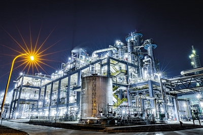 走进平煤神马集团煤化工厂区,各色管道交织、反应塔林立,蓝天白云下极富工业美感。