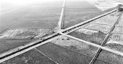 12月21日,在常宁市洋泉镇土桥村,工作人员驾驶作业机械进行高标准农田建设施工(无人机照片)。眼下,湖南省衡阳市常宁市利用农闲时节加紧推进高标准农田建设,将农田建设与流域生态治理、撂荒地复垦复种、农业产业规模化机械化标准化发展相结合,同时提升配套设施水平,改善农田灌溉及耕作条件,建设集中连片、设施完善、水利配套、生态良好、抗灾能力强的基本农田,促进农业增效、农民增收,助推乡村振兴。新华社发(周秀鱼春 摄)