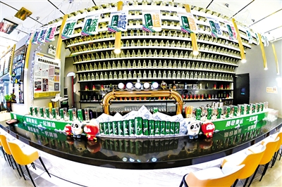 在冰雪主题酒吧,青岛啤酒品酒师马晓晴与现场的冰雪爱好者,一边品酒,一边畅谈关于冰雪运动的故事。“冰雪项目不但是技术的比拼,更是艺术的展示,酿酒也是如此,是酿造技术与艺术的产品。”马晓晴表示。