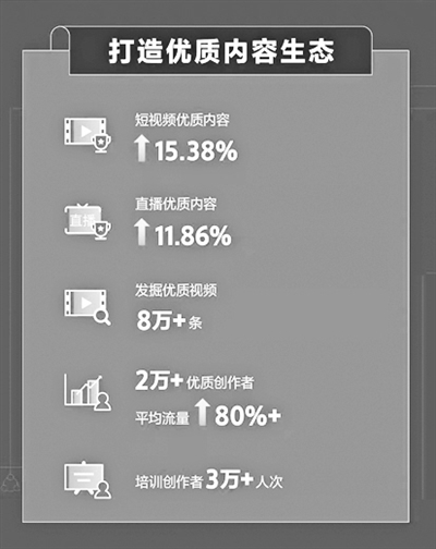 技术创新方面,平台搭建“电商内容生态多元识别体系”,全面监测平台内容质量分布及变化趋势,通过数据模型和技术手段发掘优质内容。截至2021年底,超8万条优质视频和超2万名创作者被发掘。
