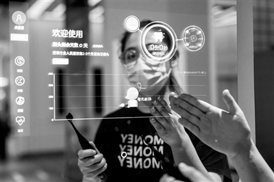5月26日,工作人员在国家大数据(贵州)综合试验区展示中心内使用智能家居的智能镜子。贵州是全国首个大数据综合试验区,大数据发展推动政用、商用、民用多个领域。 新华社记者 欧东衢 摄
