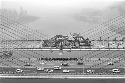 当日,由中国铁建大桥局承建的重庆轨道交通18号线关键控制性工程——李家沱长江复线桥成功合龙。李家沱长江复线桥工全长约1306米,于现有的李家沱长江大桥上游侧约52米处平行跨越长江。新华社记者 黄伟 摄