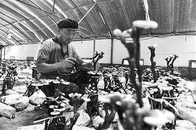 在位于山东省聊城市冠县店子镇的山东三秀生物科技有限公司里,总经理曹子英熟练地侍弄着各式灵芝盆景,记者看到,有的造型像松树,有的似龙凤。“灵芝的花样可多了。”他说。