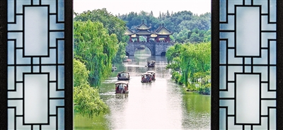 扬州瘦西湖风景区(6月15日摄)。 “天下三分明月夜,二分无赖是扬州”。古诗词中风姿无限的扬州,近年来,按照“护其貌、美其颜、扬其韵、铸其魂”的思路,全面保护历史文化遗产,延续古城空间格局,维护古城特色风貌,改善市民生活环境与文化氛围。 新华社记者 李博 摄