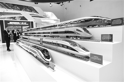 图为当日中国铁道科学研究院集团有限公司展示的多款动车组模型。新华社记者 金立旺 摄