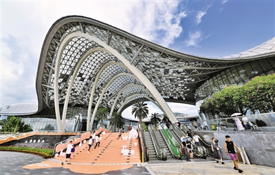 中秋和国庆长假期间,海南离岛免税购物火爆。这是记者拍摄到的海南三亚国际免税城。记者 郭程 摄