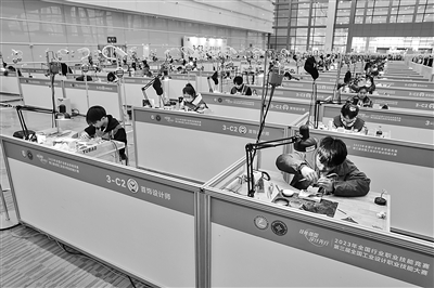 图为12月3日,选手在参加首饰设计师比赛。新华社记者 沈伯韩 摄