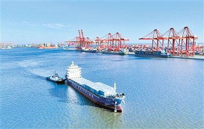12月21日,一艘轮船在唐山港京唐港区集装箱码头卸载后驶离港区(无人机照片)。记者从河北省唐山市海洋口岸和港航管理局获悉,截至12月20日24时,唐山港货物吞吐量达到80645.09万吨,同比增长10.89%,标志该港正式迈入8亿吨大港行列。