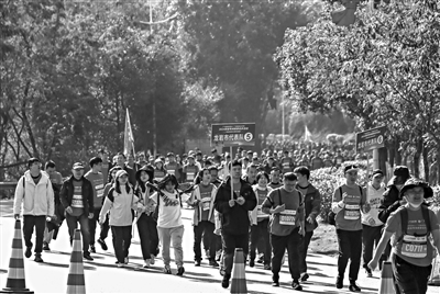 1月6日,2024首届粤闽健康徒步活动在广东梅州开启,吸引近3000名健身爱好者参加。活动设置73公里、28公里和5公里三个组别。比赛起点位于广东梅州大埔县,前两个组别的终点位于福建龙岩永定区。图为健身爱好者在徒步活动中。新华社记者 黄国保 摄