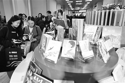 1月11日,2024北京图书订货会在北京开幕。本届订货会以“坚定文化自信,铸就出版新辉煌”为主题,集中展示图书40余万种,展览面积超5万平方米,参展商达720余家。图为参观者在2024北京图书订货会上阅览书籍。新华社记者 鞠焕宗 摄