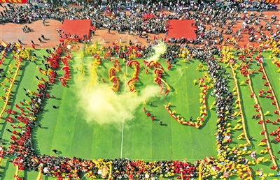 这是贵州省石阡县仡佬毛龙节贺新春活动现场(无人机照片)。新华社记者 杨文斌 摄