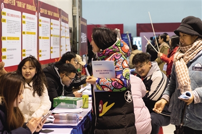 还未及正月十五,位于安徽阜阳的阜阳市体育中心内已经热闹非凡。外面雪花纷飞,室内却早已挤满了人。一大早,市民彭先生和妻子刘女士就来到这里,夫妇二人在外打拼多年,看到新能源企业发出的招聘中有适合自己的岗位,希望能在家门口谋个好差事。“不比以前,现在家里就业机会多了,待遇也好不少。”彭先生说。