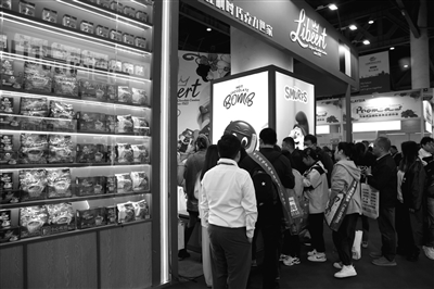 在10号馆进口食品展区,比利时国家(商品)馆邀请了一家比利时巧克力厂设立展位。“这里的人真的非常多。比利时是以巧克力、啤酒、钻石和蓝精灵闻名的国家,而我们是唯一能使用蓝精灵IP的巧克力厂家,所以大家对我们的产品非常感兴趣。”这家比利时巧克力厂的负责人莉莉·利比特表示。