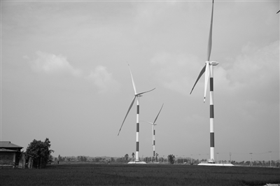随着最后一台风机安装完成,中国企业投资承建的孟加拉国首个集中式风电项目——科克斯巴扎尔风电场24日全面投产。这是近日拍摄的孟加拉国科克斯巴扎尔风电场的风机。新华社记者 孙楠 摄