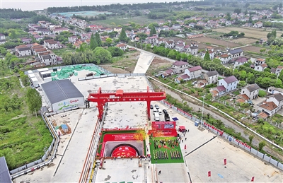 4月29日,空中俯瞰位于上海崇明的沪渝蓉高铁崇太长江隧道“领航号”盾构机始发现场(无人机照片)。该隧道全长14.25公里,是目前世界直径最大、掘进距离最长的高铁越江隧道工程,设计时速350公里。隧道建成后,将首次实现高铁列车不减速穿越长江,对优化沿长江地区铁路网布局、服务长江经济带协同发展、推动长三角高质量一体化发展具有重要意义。新华社记者 方喆 摄