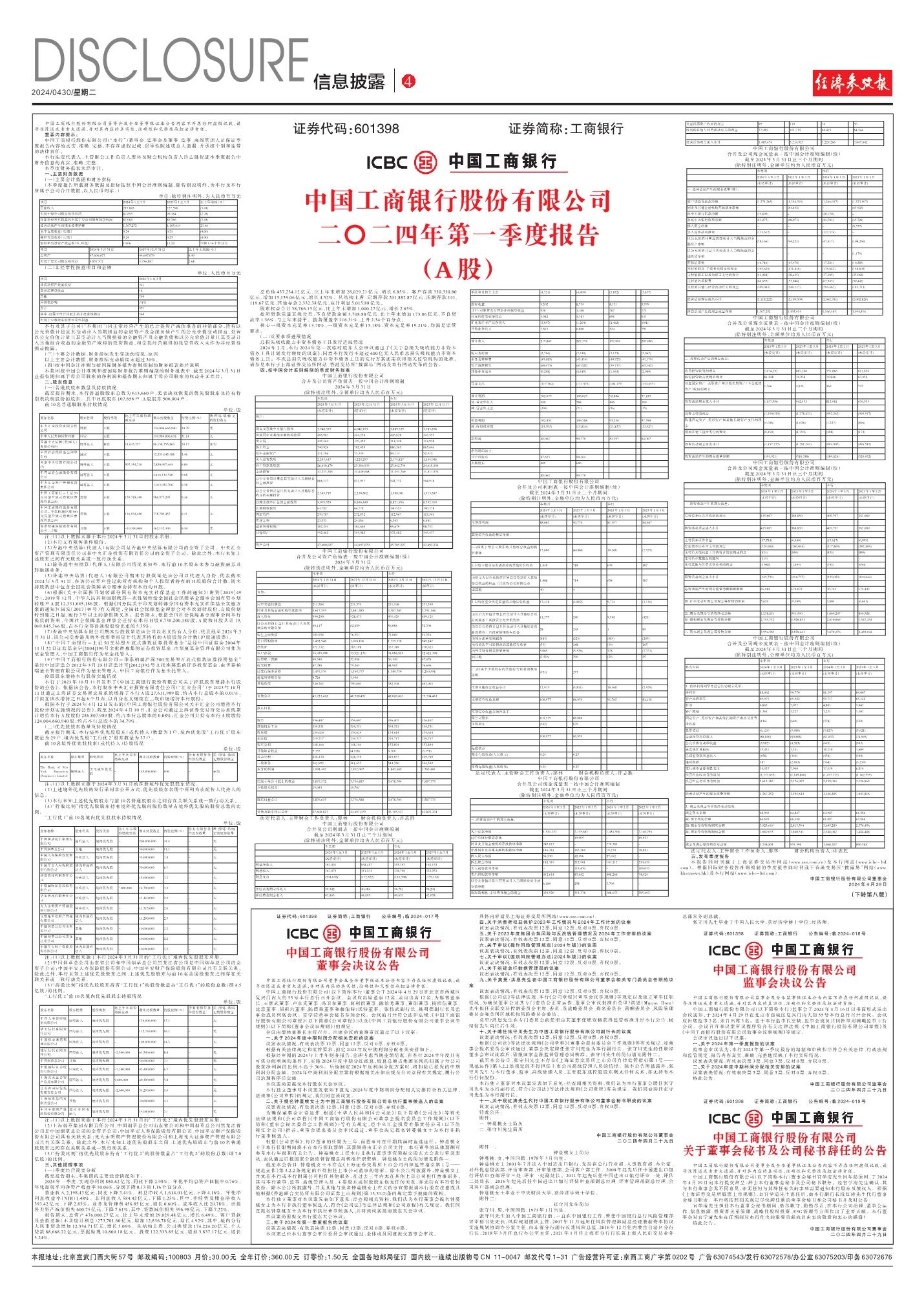 中国工商银行股份有限公司二〇二四年第一季度报告(A股)