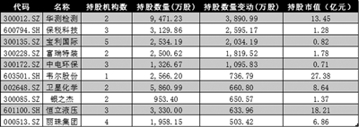 在增持个股中,还有五只个股获得了QFII千万股以上的增持,分别为华测检测、保税科技、宝利国际、富瑞特装、中电环保。例如,保税科技获摩根士丹利国际股份有限公司去年四季度增持超2393万股,获高盛集团增持超396万股,获瑞士联合银行集团增持超339万股;富瑞特装同样获摩根士丹利国际股份有限公司增持超1509万股,获瑞士联合银行集团增持超991万股;而中电环保则分别获瑞士联合银行集团、摩根大通证券有限公司、摩根士丹利国际股份有限公司增持超524万股、超472万股、超329万股。