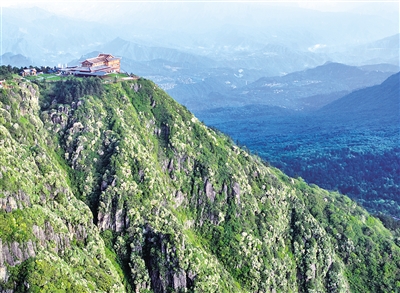 峨眉山景区金顶岩壁上的杜鹃花盛开(5月26日摄,无人机照片)。每年4月至6月,是登峨眉山赏杜鹃花的最佳时节。峨眉山素有“杜鹃王国”之称,全山分布杜鹃花约30种,已形成类型多样的原始杜鹃林景观。特别是海拔2000米以上的高山区,每至花期,各类杜鹃高低错落、竞相怒放,令人目不暇接。新华社记者 江宏景 摄