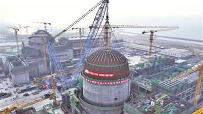 据介绍,穹顶位于核岛顶部,呈半球形,是保障反应堆厂房完整性和密封性的重要组成部分。新华社发