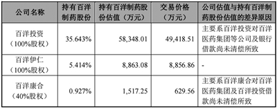 与此同时,根据百洋医药测算,通过收购百洋伊仁100%股权间接收购百洋制药股份的交易价格和直接收购百洋制药股份的价格基本一致;由于存在未清偿债务,通过收购百洋投资及百洋康合间接收购百洋制药的股份,百洋医药支付的交易对价分别低出直接收购上述公司所持百洋制药股份的价格0.89亿元、0.09亿元,有利于降低上市公司短期债务支付的压力,具有合理性。