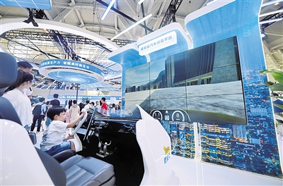 图为一名儿童在博览会智能网联汽车展区体验模拟驾驶。在天津举行的2024世界智能产业博览会上,国内外众多车商、高校、企业等带来了多款智能网联新能源汽车及架构平台、模拟测试平台等,让参观者近距离感受科技发展给交通出行带来的变化。新华社记者 赵子硕 摄