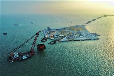 2017年12月21日,东人工岛正式开工建设,经过2000多天攻坚克难,建设团队相继攻克了海域深厚软基超深超宽基坑集群工程施工阶段防渗止水及回填均匀控制难题,破解了深基坑施工抵近构造物小变形世界难题。