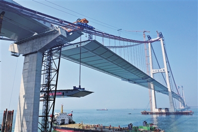面对一长串的难题,上万名建设者以“敢教日月换新天”的奋斗精神,七年磨一剑,在伶仃洋上建起世界最大跨径全离岸海中钢箱梁悬索桥,铺设世界首例双向八车道钢壳混凝土沉管隧道,造出世界首例水下高速公路枢纽互通,以过硬的实力创下10项“世界之最”。