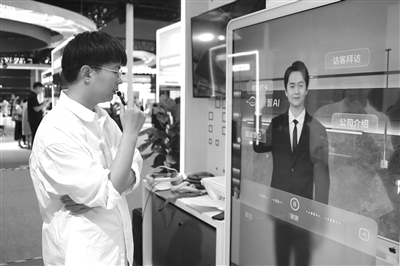 7月2日至5日,以“开启数智新时代,共享数字新未来”为主题的2024全球数字经济大会在北京国家会议中心举办。据了解,大会打造“1+6+3+N”活动框架,设置开幕式和主论坛、六大高层论坛,配套“数字经济体验周、数字之夜、成果发布会”三项品牌特色活动,组织多场论坛和系列活动。图为工作人员在2024全球数字经济大会数字经济沉浸式体验区与数字人交流。新华社记者 任超 摄