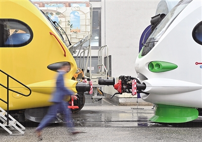当地时间9月24日至27日,第十四届柏林国际轨道交通技术博览会在德国柏林举行。主题是“移动出行的未来”,电和氢驱动的低碳轨道技术,以及数字化、智能化解决方案成为焦点。图为一名男子在柏林轨道交通展参观。新华社记者 任鹏飞 摄