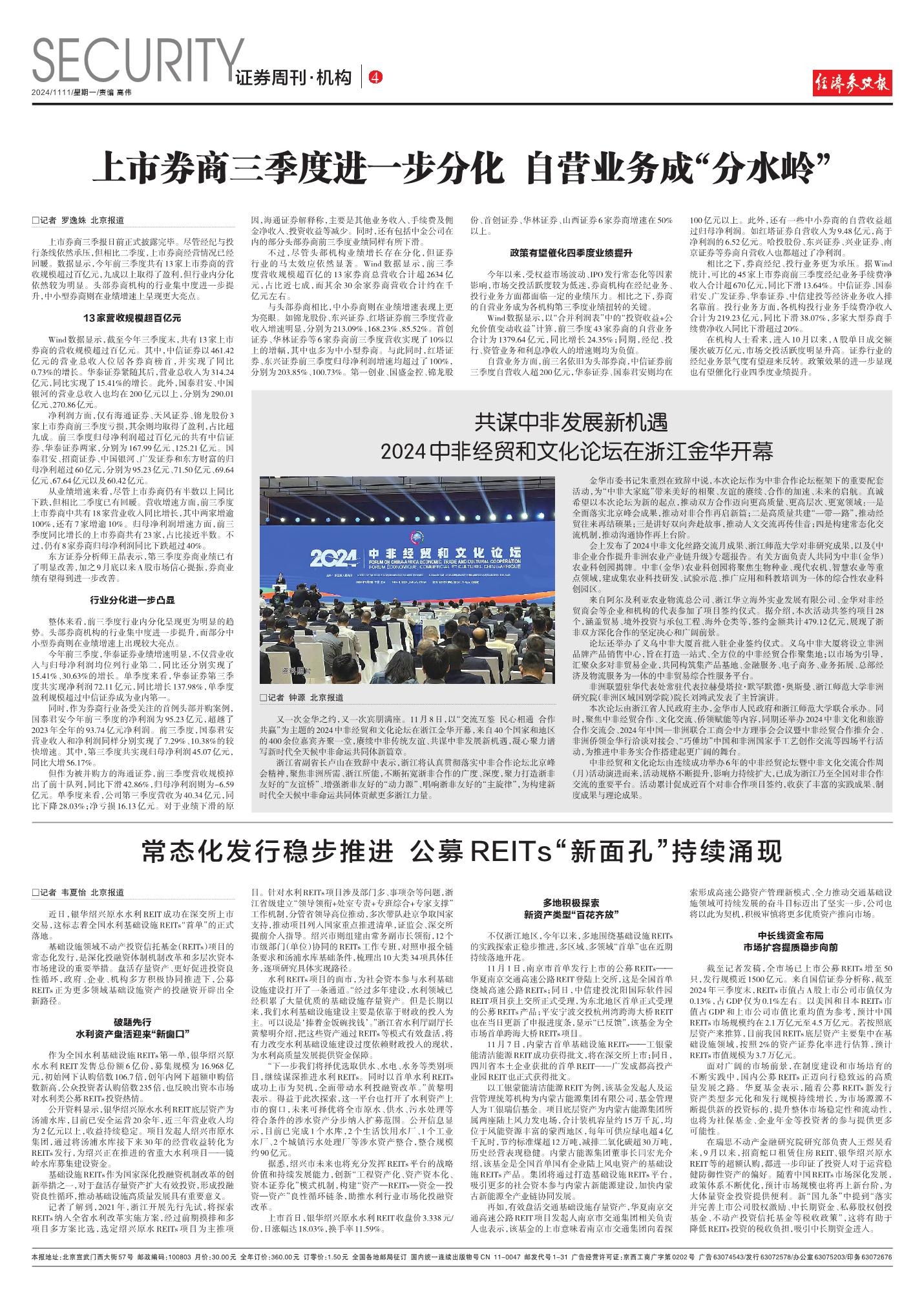 上市券商三季度进一步分化 自营业务成“分水岭”