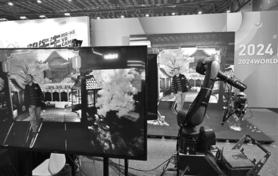 11月12日,以“虚实互融,智领未来”为主题的2024国际虚拟现实创新大会在青岛市举行。大会集中展示了虚拟现实和人工智能领域的新产品和前沿技术,吸引了产业链上下游众多企业参会。图为当日参观者在展会上沉浸式体验虚拟拍摄。新华社记者 李紫恒 摄
