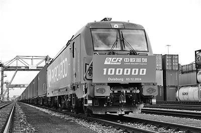 12月3日,第10万列中欧班列抵港接车仪式在德国杜伊斯堡举行。这列满载电子信息产品、汽车整车及零配件、机械工业配件、家用电器等货物的火车,在车站内接受着人群的欢迎。