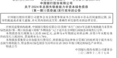 中国银行股份有限公司关于2024年总损失吸收能力非资本绿色债券(第一期)(债券通)发行完毕的公告