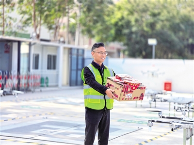 2月3日,春节假期即将画上句号之际,深圳石岩丰翼无人机运营中心内,一位地勤工作人员正将一箱箱新鲜的车厘子仔细打包。随后,这些承载着美味与祝福的年货将搭乘无人机,穿越城市的天际线,精准无误地送达到收件人手中。