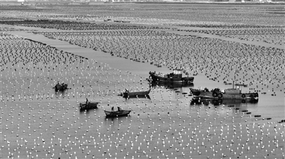 2月11日,在山东省荣成市爱伦湾海洋牧场海带养殖区,养殖工人在加装海带浮筏(无人机照片)。山东省荣成市是我国重要的海带养殖区,年产鲜海带50万吨以上,被誉为“中国海带之乡”。新华社发(杨志礼 摄)