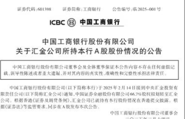 中国工商银行股份有限公司关于汇金公司所持本行A股股份情况的公告