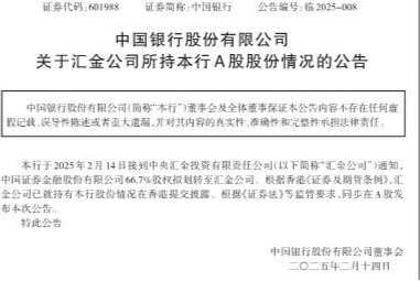 中国银行股份有限公司关于汇金公司所持本行A股股份情况的公告