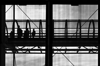 3月8日,在法国巴黎,人们站在蓬皮杜艺术中心的走廊上。新华社/法新