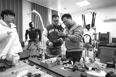 近年来,湖北省加大对科技创新主体引培,依托省内强大的科研力量和产业基础,组织省内多所高校、科研院所、企业进行科研攻关,以“用”为导向,全力拓展应用场景,促进人形机器人产业创新发展。图为在武汉大学机器人学习算法与软操作实验室内,研发团队在对“天问”人形机器人进行研发调试。记者 肖艺九 摄