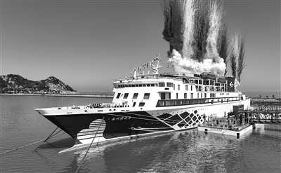 4月28日拍摄的“海州湾之星”号(无人机照片)。当日,集餐饮、住宿、娱乐、研学等功能于一体的海上酒店——“海州湾之星”号在江苏连云港市连云区海州湾畔投入运营。“海州湾之星”号由一艘国际航线客滚船为主体升级改装而成,可提供52间客房、10个餐饮包间及容纳30桌宴会的多功能厅,并配备全日制自助餐厅、海上酒吧、船舶科普展示馆等设施,将推动滨海旅游从传统观光向深度体验升级发展。新华社发(王健民 摄)