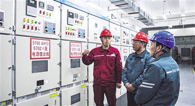 图为国网东明县供电公司工作人员在国恩化学有限公司开展安全用电检查,了解客户用电需求,前期通过优化供电方式帮助客户节约用电成本。(杨华建 摄)