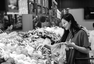 国家统计局日前发布的数据显示,4月份,受国际油价下行影响,全国居民消费价格指数(CPI)同比下降0.1%;扣除食品和能源价格的核心CPI上涨0.5%,涨幅保持稳定。图为消费者在山东省滨州市阳信县一家超市选购水果。