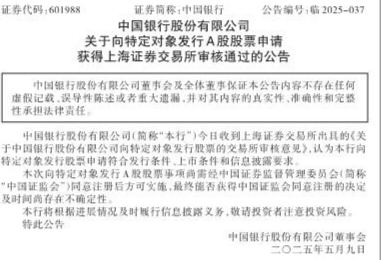 中国银行股份有限公司关于向特定对象发行A股股票申请获得上海证券交易所审核通过的公告