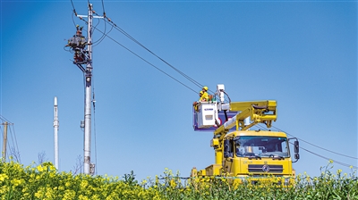 图为当地供电部门正开展带电作业,消除隐患,保障电力畅通,为智慧农业注入强劲动力。(王灿成 摄)